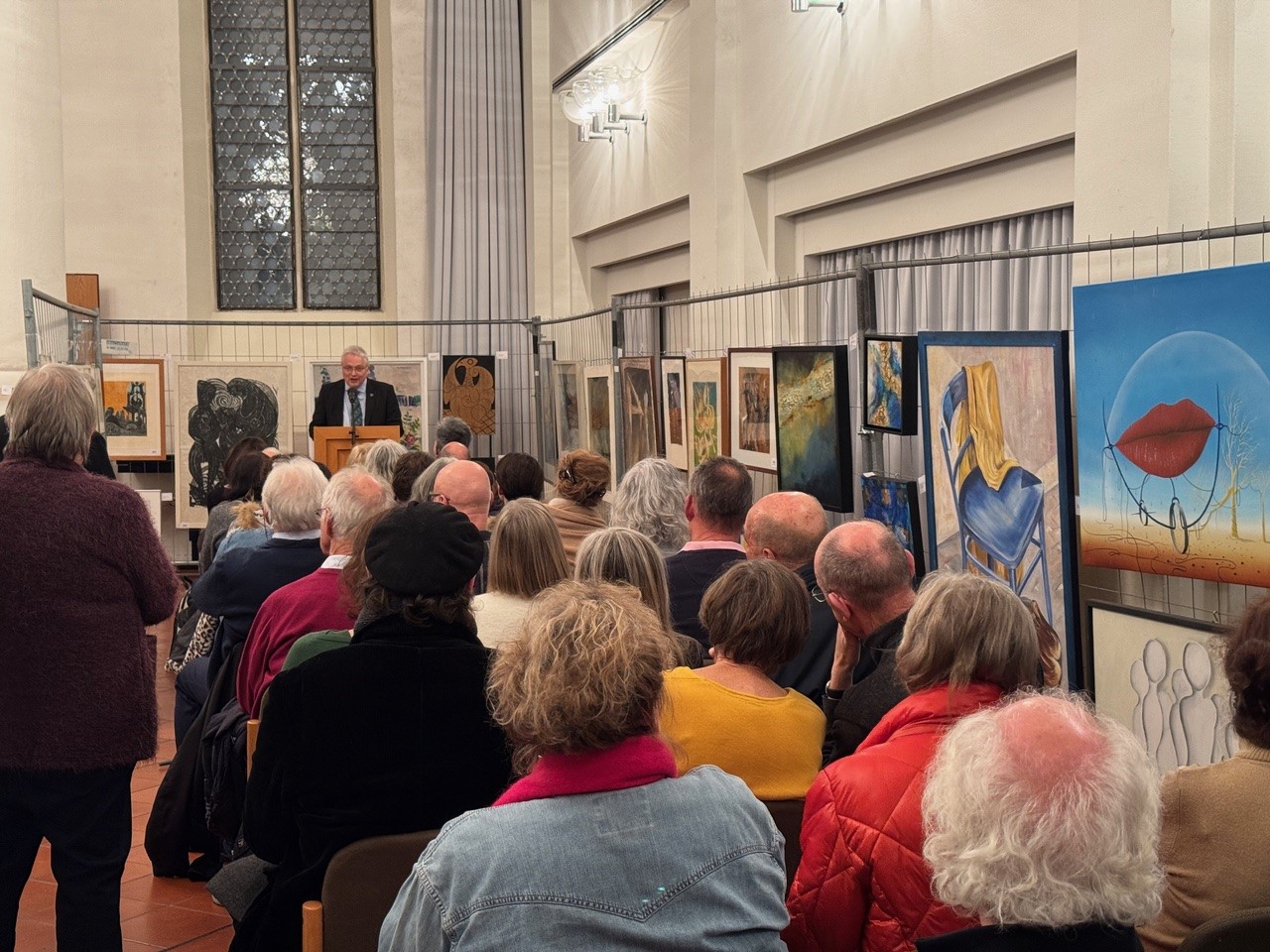 Die Benefizausstellung "Kunst und gut 2025" fand auch dieses Jahr wieder im Spitalhof in Reutlingen statt – einem Ort, dessen historisches Ambiente seit vielen Jahren den besonderen Charakter dieser Veranstaltung prägt. Schon zur Eröffnung war klar, dass die Ausstellung fest in der Stadtkultur verankert ist, denn der Saal war voll und die Stimmung äußerst lebhaft.